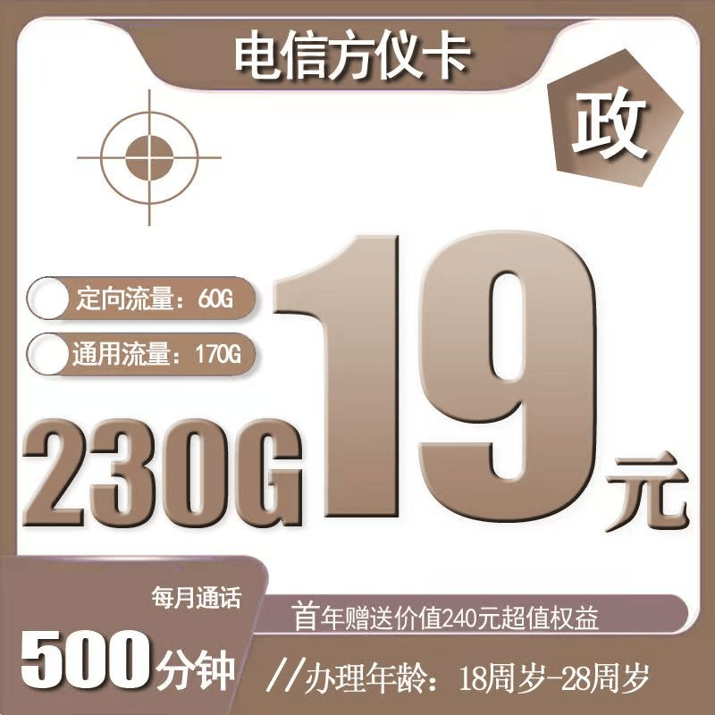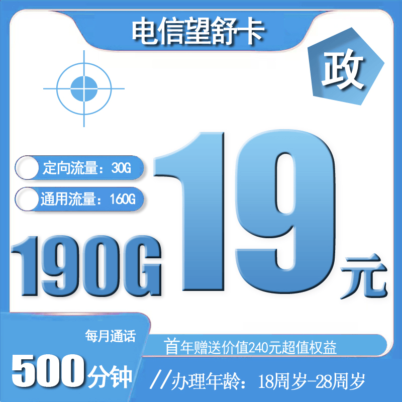 19元130G全国流量+500分钟+100条短信+首年赠送价值240元视频会员/实物产品